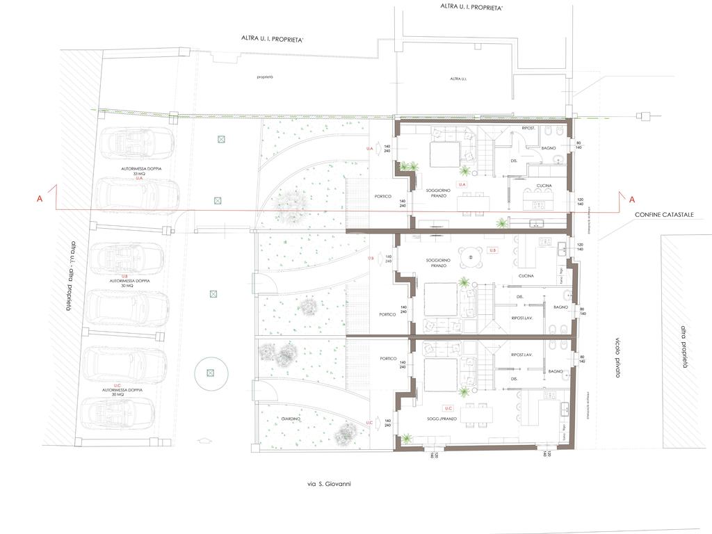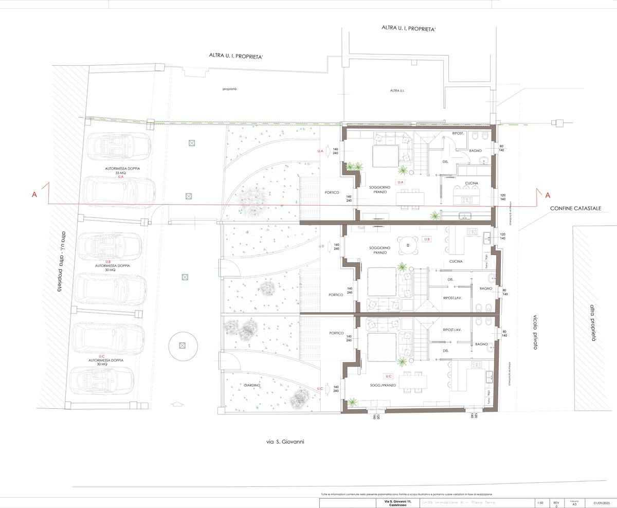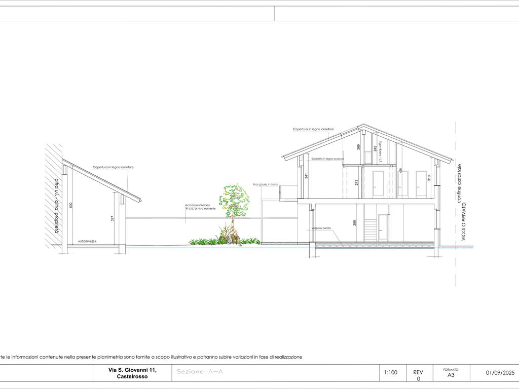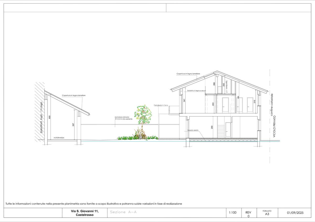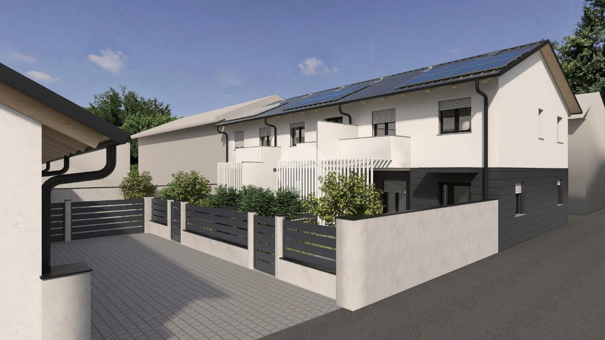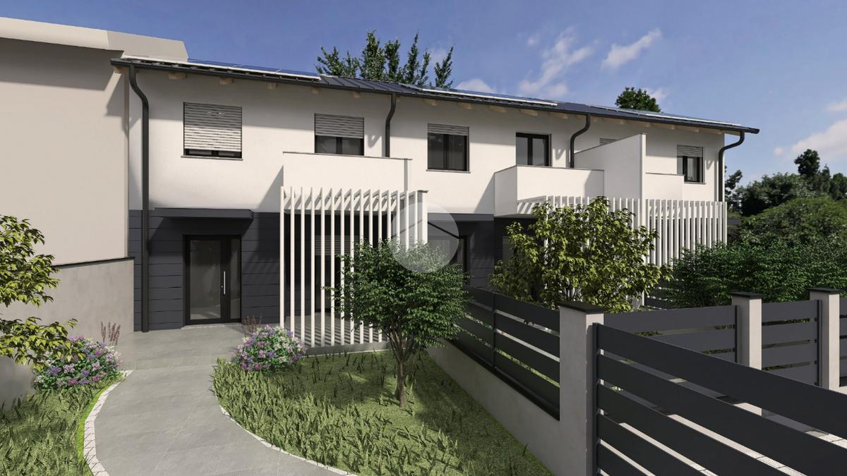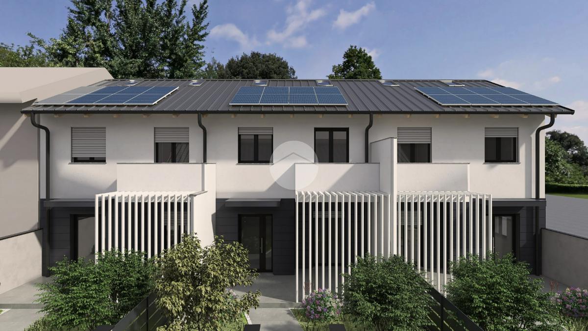 Nella frazione di Castelrosso ben collegata ai principali servizi della città. In contesto di nuova realizzazione proponiamo in vendita esclusiva, tre villette a schiera libere su due e tre lati con giardino privato. Disposte su due livelli, ogni villetta si compone al piano terreno da ingresso su accogliente soggiorno open space con cucina a vista o separata, ripostiglio e servizio. Al piano superiore tre camere da letto (tutte con cabina armadio) e due bagni, di cui uno nella camera padronale. A completare il piano un soppalco ad uso studio/relax. Ogni soluzione gode di giardino privato con portico e di box auto doppio di circa 30 mq. Capitolato e finiture interne di ottima qualità con possibilità di personalizzazione degli interni. Infissi in legno laccato con vetrocamera, riscaldamento e raffrescamento a pavimento con pompa di calore e ventilazione meccanizzata arricchiscono i comfort abitativi. Dotate di panelli fotovoltaici per la produzione di corrente e per ridurre al minimo i costi di gestione. Classe energetica A